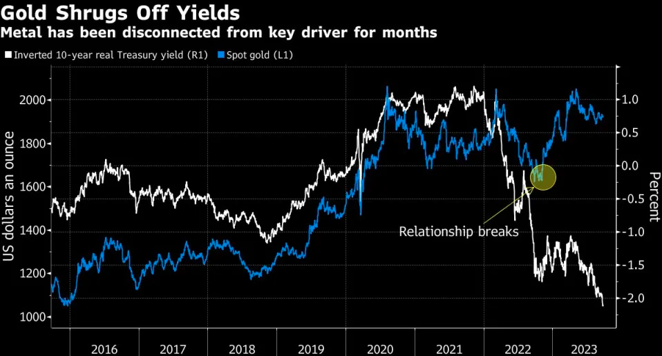 在过去十年的大部分时间里,这个答案很简单也很明确:货币价格。利率越低,黄金价格越高,反之亦然。