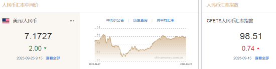 9月25日,人民币中间价报7.1727,上调2点,上一交易日中间价报7.1729。