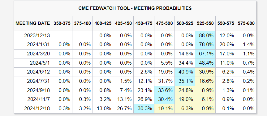 CME美联储观察工具显示,多数投资者不再预期会有进一步加息。