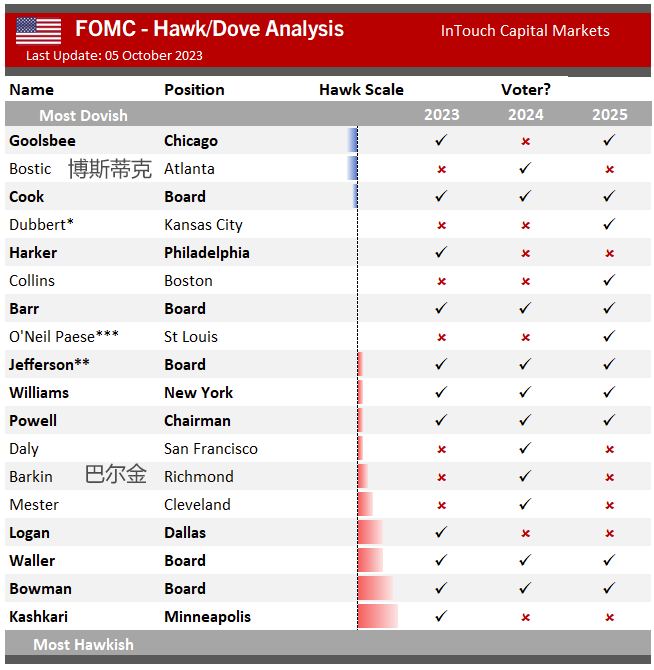 而较“鹰派”的巴尔金则表示,他认为美国经济已经不像第三季度GDP报告显示的那样充满活力,“经济放缓即将到来,我们需要这种放缓,这将使一些制定物价的人相信拥有定价权的日子已经结束。”