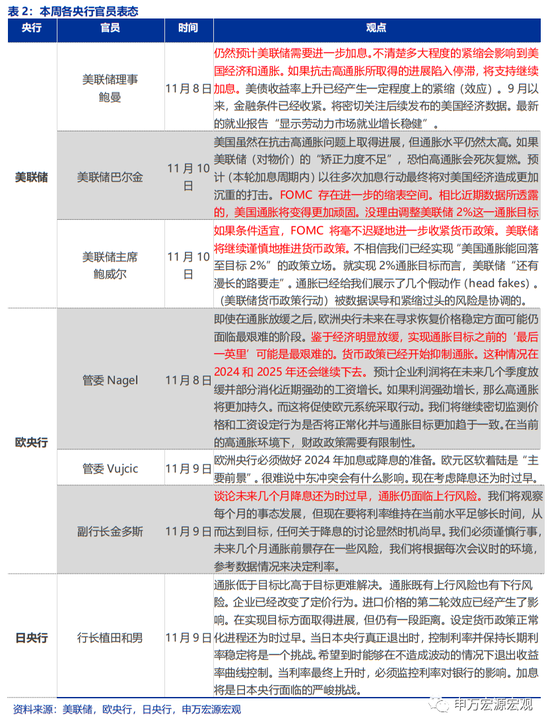 2)非农:11月3日美国劳工局公布的非农数据低于市场预期,虽然失业率仅上行0.1个百分点,但市场开始担忧就业市场回落风险。