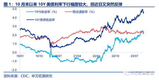 10月末以来,10Y美债利率波动较大,先是从接近5.0%的高位回落至11月8日的4.49%,而后最近几天又猛然掉头上行至4.61%左右,我们此次就近期美债利率走势背后的驱动因素进行分析,以及对未来趋势进行初步展望。