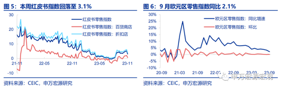 需求:本周红皮书零售指数回落至3.1%,折扣店指数和百货商店指数分别回落至4.0%和0.7%。9月欧元区零售指数同比2.1%,环比0.1%。