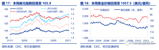 汇率利率黄金:截止11月9日,黄金价格回落至1957.5美元/盎司,美元指数回落至105.9。