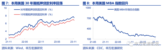 地产:本周美国30年期抵押贷款利率回落至7.5%,15年期抵押贷款利率回落至6.8%。本周美国MBA指数回升至165.9。