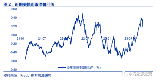 财政再融资、FOMC会议以及低于预期的非农数据驱动美债利率大幅回落。1)再融资:11月1日美国财政部公布了最新再融资发债结构,主要将FY24 Q1付息债券增发结构调整为更集中于2-7年期国债,而非10-30年期的长期国债,低于市场此前对美国财政部会维持上一次再融资会议付息债券增发结构的预期,反映在美债供需角度中的供给压力有所缓和。2)非农:11月3日美国劳工局公布的非农数据低于市场预期,虽然失业率仅上行0.1个百分点,但市场开始担忧就业市场回落风险。3)FOMC:此外,11月美联储FOMC会议释放的新信息甚少,对资产价格影响也不大,最重要的是向市场传达了期限溢价飙升可能替代加息作用的信息,导致市场对美联储进一步加息的预期下行。