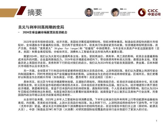 中金2024年展望 | 全球研究:美元与利率回落周期的变局