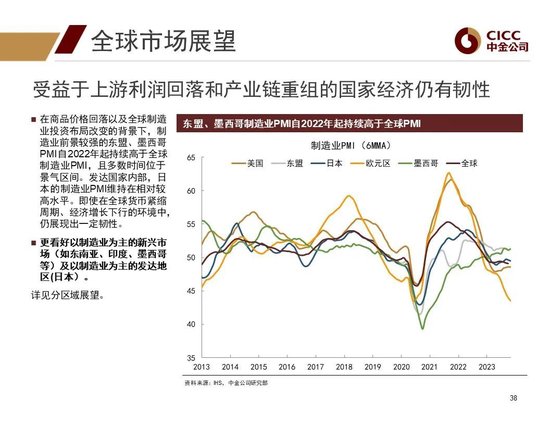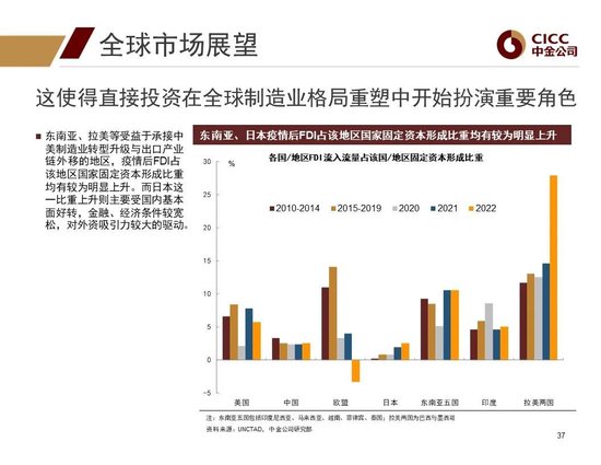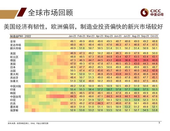 另一方面,全球需求下行和流动性收紧都将持续压制大宗商品价格,上游利润回落,我们认为逻辑上利润可能会向制造国集中;同时考虑到全球产业链重组带来的影响,以制造业为主的经济体或将持续受益。区域而言,我们更看好以制造业为主的新兴市场(如东南亚、印度、墨西哥等)及发达地区(日本)。