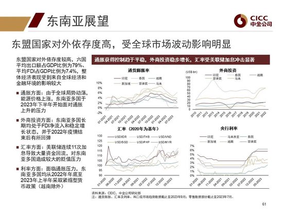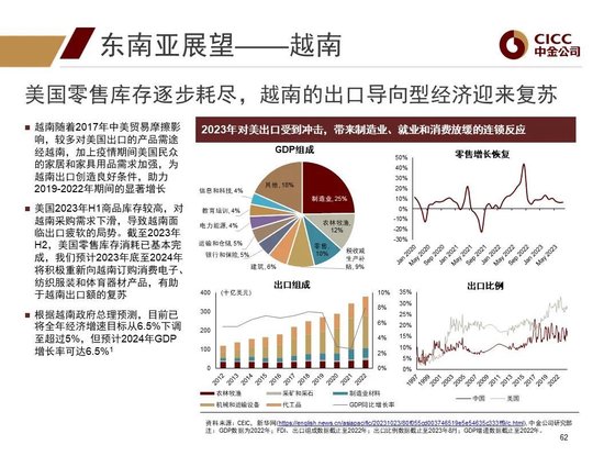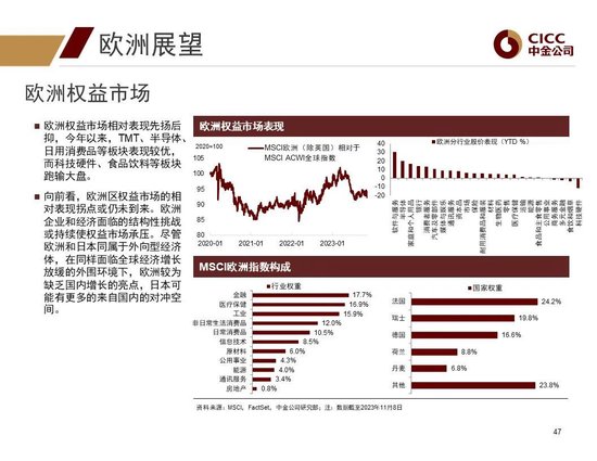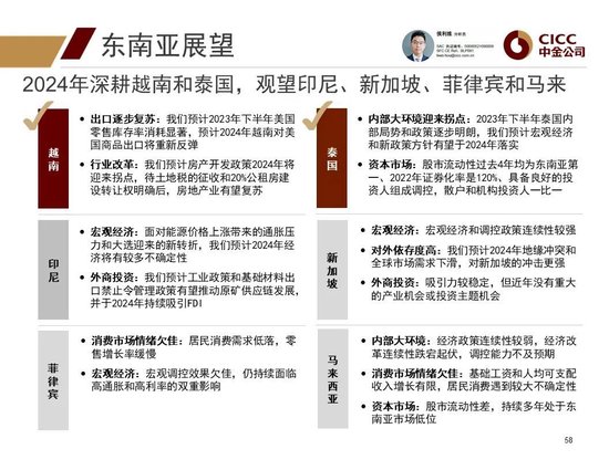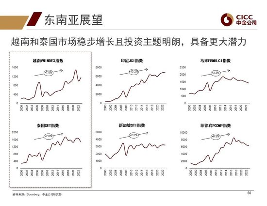 具体而言,欧元区今年经济增速整体放缓,且通胀仍具粘性,滞胀挑战仍在。欧美经济动能或保持分化,欧元维持震荡走势,欧元区权益市场的相对表现拐点未至。日本疫后经济发展势头迅猛,我们认为,经济增速预计高于潜在经济增速,衰退概率较低。受益于日本国内经济的持续恢复、通胀利好财报、个人投资者加持等影响,我们认为2024年日股或仍将维持出色表现。东南亚地区我们主要看好越南和泰国:越南受益于出口复苏以及房地产行业改革,而泰国国内政治环境以及经济政策或将迎来转折。