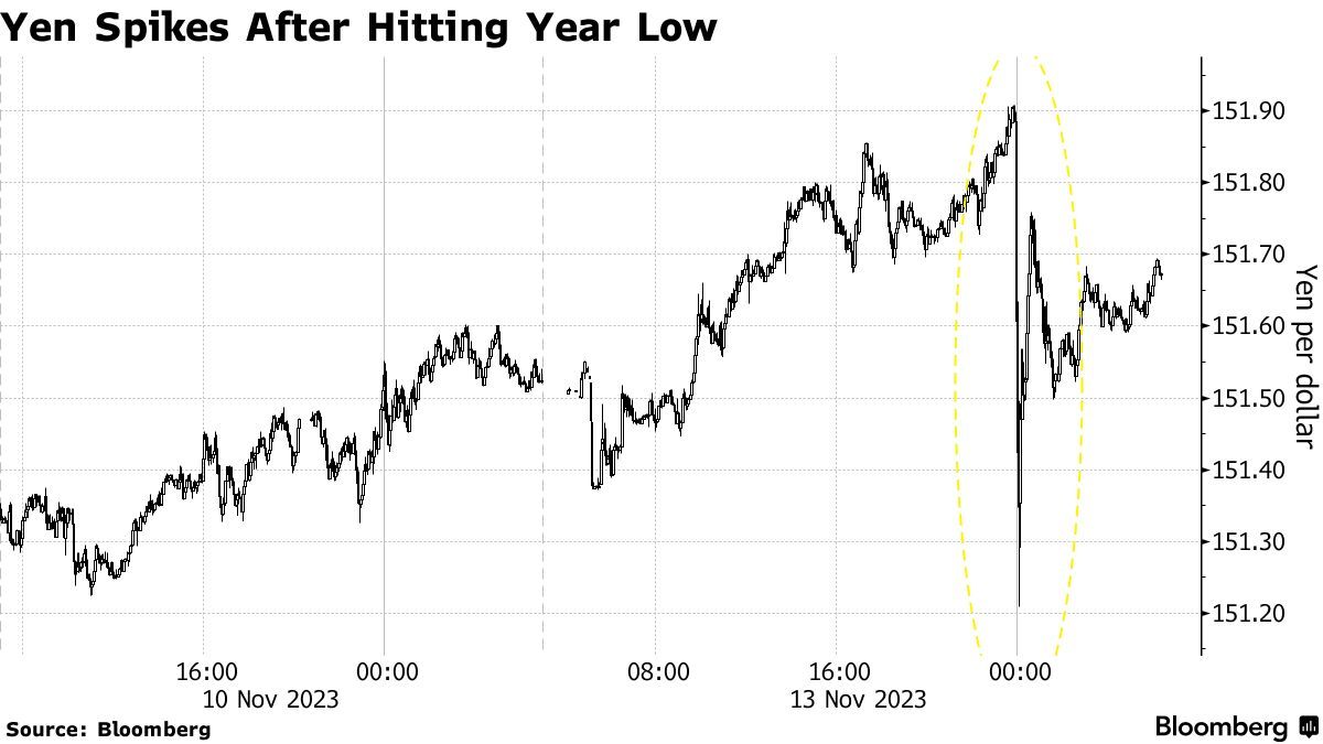 Bannockburn Global首席市场策略师Marc Chandler表示:“我怀疑这是市场在自作主张,因为人们担心日本当局会干预。”他指出,约12.5亿美元的日元期权周一将在1美元兑152日元的水平到期,这可能导致日元在这一关键水平附近突然波动。他将这比作10月初的一幕,当时日元在纽约交易时段同样突然走强,引发了一场关于日本当局是否介入市场的争论。