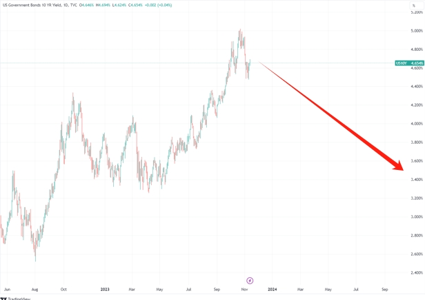(美国联邦基金利率上限,来源:tradingeconomics)按照两位策略师的预期,经历过去一年半暴力加息525个基点后,美联储仅在明年一年时间里就要“腰斩”政策利率,而目前市场的主流预期仅为降息75个基点,最快从明年7月开始。