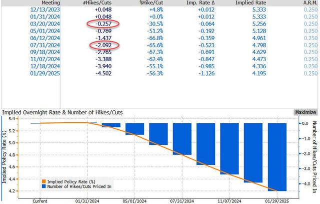 Tolou Capital Management的CEO Spencer Hakimia评论称,美联储合计525个基点的紧缩以及量化紧缩(QT)的累积效应显然在发挥作用,联储货币政策委员会FOMC必须保持耐心,让去年的紧缩行动在经济中充分体现。由于降息的市场定价以及近5.00%的收益率,两年期美债有望获得极具吸引力的风险调整回报。