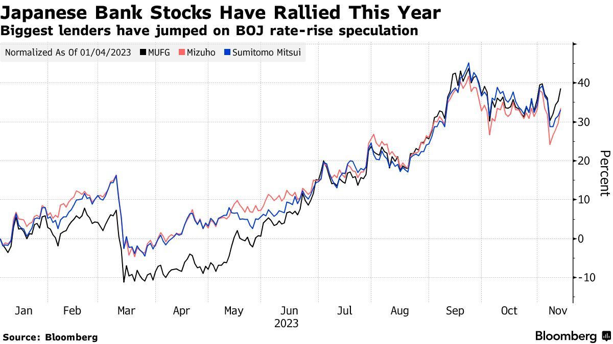 股价方面,三菱日联金融集团股价今年以来的涨幅达到44%,有望创下10年来的最佳表现。三井住友股价在今年以来累计上涨35%。