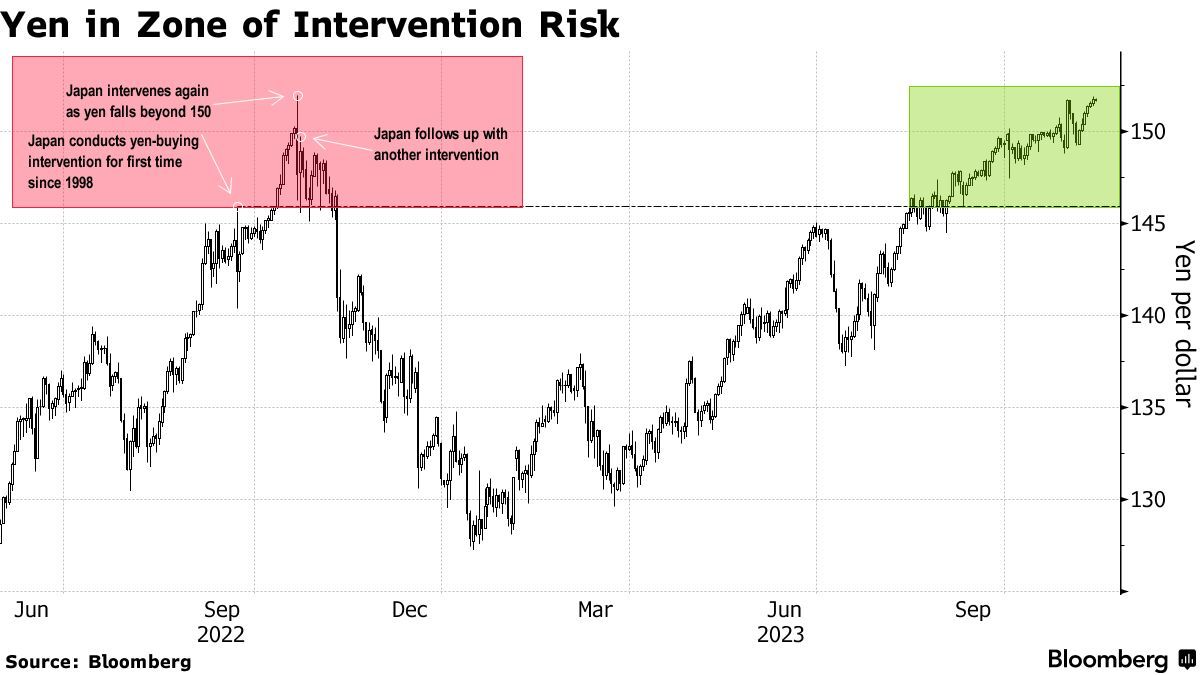 日元兑美元汇率已处于去年引发日本当局下场干预的水平,周一差一点突破1美元兑151.95日元的关键水平。索尼金融集团(Sony Financial Group Inc.)高级外汇分析师Juntaro Morimoto表示:“市场参与者正密切关注CPI,任何高于预期的通胀数据都将加大美元兑日元汇率突破151.95并加速上行的风险,那么日本当局干预的风险就会变成现实。”