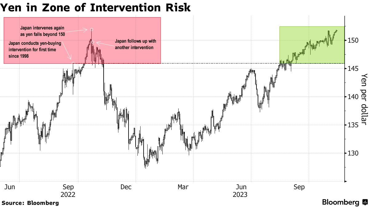日元兑美元汇率已经跌到了去年干预的水平,周一几乎触及关键阈值151.95。日本财政大臣铃木俊一本周多次警告称,过度波动是不可取的,政府将根据需要做出回应。
