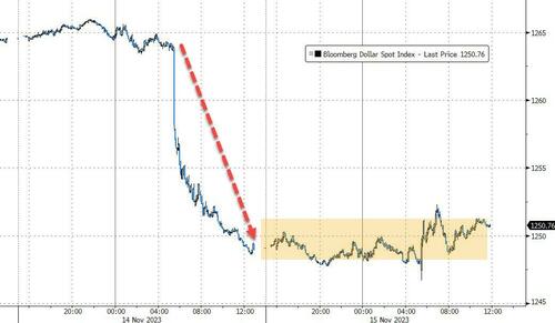 自美联储上次议息会议于11月1日结束以来,市场对美联储加息行动逐渐收尾的希望引发了一波股债市场的猛烈反弹,美元指数则跟随美债收益率大幅走弱。这一跌势在本周二低于预期的美国10月CPI数据公布后被进一步被放大。10年期美国国债收益率当天的跌幅接近了20个基点,彭博美元指数则创下了2022年11月11日以来的最大单日跌幅。
