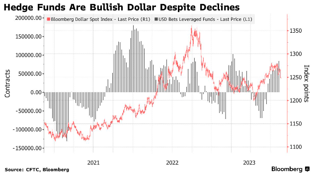 从持仓数据看,虽然近几周有关美联储鸽派转向的押注明显升温,但一些美元多头依然并未轻易缴械。根据美国商品期货交易委员会(CFTC)的数据显示,对冲基金当前在美元多头阵营中正占据显要位置,连续第八周增持多头头寸,创下逾两年来最长的连续增持纪录。