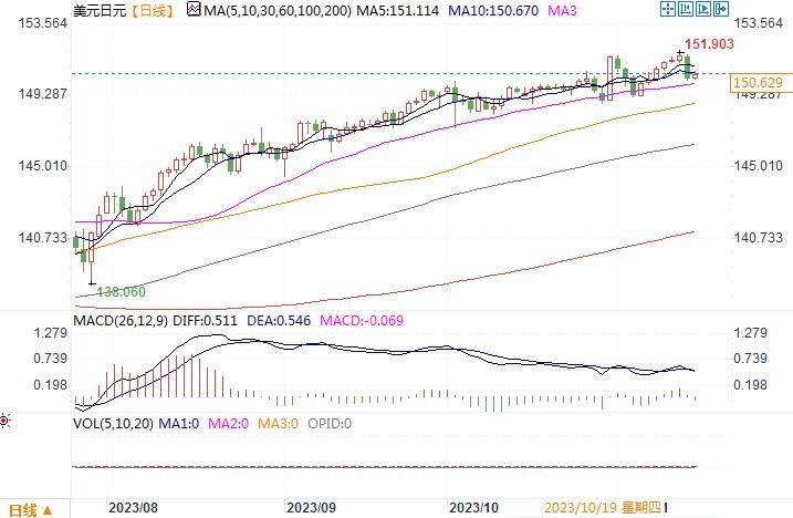 美元兑日元日线图北京时间11月15日15:04 美元兑日元 报 150.629/680