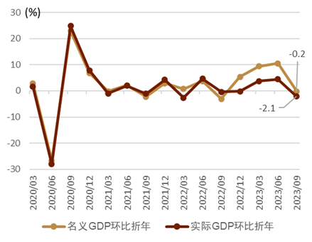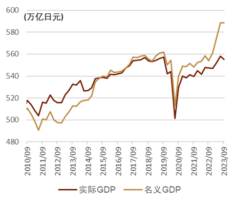 日本7-9月GDP环比为负、但同比为正,通胀背景下名义GDP明显好于实际GDP