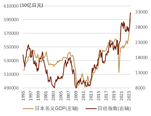 对日本股票的影响:名义GDP同日企业绩存在联动,进而同日经指数也存在联动