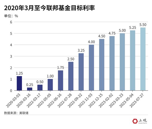至今,美国已累计加息11次,最高时曾连续4次加息75个基点,是近40年来最快的加息速度。直到今年2月,加息幅度才逐渐放缓,回到25个基点。