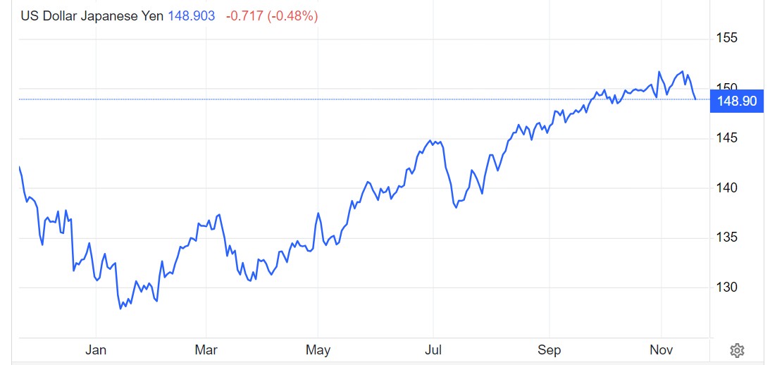 然而,迄今为止,这些举措都未能刺激日元持续上涨。在截至11月14日的当周,一些杠杆基金将日元净空头头寸增加至2022年4月以来的最高水平,而许多外汇策略师也预计日元短期将进一步走软。