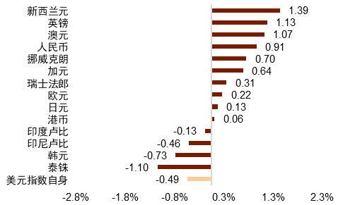 图表1:上周主要货币变化率(%)