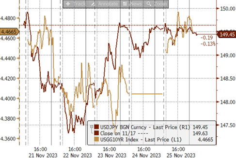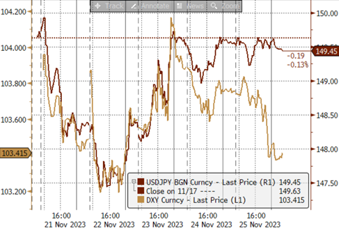 ► 上周(11/20-11/24):弱美元背景下的弱日元,日元的弱势相对“根深蒂固”。