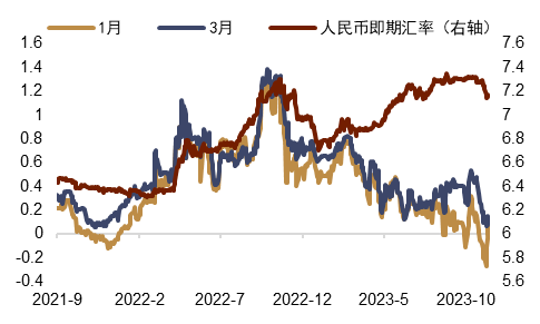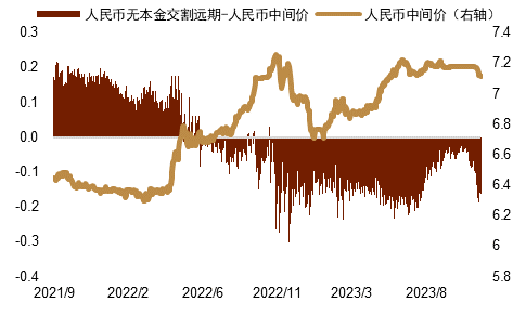 图表7:人民币无本金交割远期与人民币中间价差值