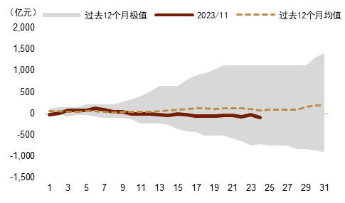 图表3:月初以来北向资金的累计净买入额(亿元)