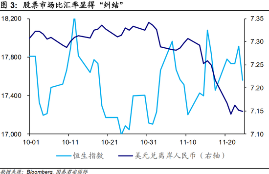 另一个问题是未来人民币汇率会如何演绎。在一段时期的“神仙打架”后,我们倾向于市场力量会逐步重回主导。尽管市场预期显得挣扎,但在人民币汇率200天均线附近的选择,表明交易员并没有放弃思考。眼下,交易员会将更多的关注目光放在政策和数据端,尤其考虑到年底本身是较为关键的政策窗口期。如果来年的数据“给力”,市场的积极反馈也会水到渠成。