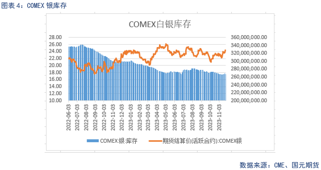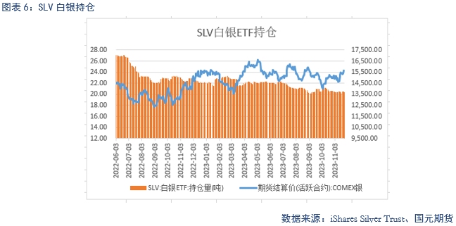 截止11月24日当周,SPDR持仓量为882.28吨,与前一周相比增加11.83吨,目前基金持仓基本维持稳定。SLV持仓量为13690.93吨,与前一周相比增加38.47吨,目前SLV持仓处于相对低位。