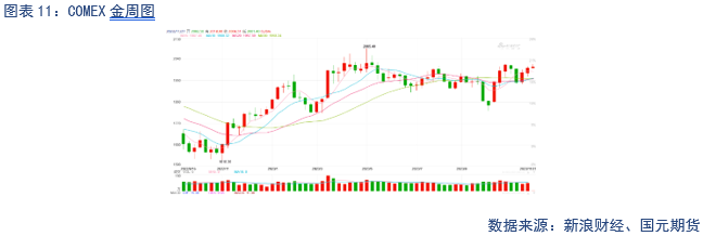 黄金价格上周涨幅明显。美国成屋销售连续五月下跌,创2010年以来新低,房价创新高、同比涨幅扩大。劳动力市场再显韧性,首申失业救济人数超预期回落,续请数据两个月以来首次下降。美国消费者长短期通胀预期均超预期创新高。美元震荡偏弱,连跌两周。本周需关注美国10月新屋销售、美国三季度实际GDP年化季环比修正值、美国10月核心PCE物价指数以及美国11月ISM制造业指数等。美元走弱叠加库存持续走低,黄金持续偏强。