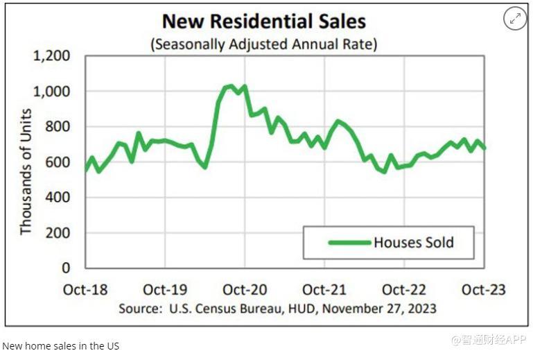 10月份新房的中位数价格为40.93万美元,同比下降了17.6%。这是美政府自1964年开始跟踪记录以来最大的百分比下降,可能反映了建筑商为吸引购房者而推出的包括降价在内的优惠措施。