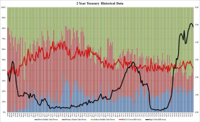 总体而言,本次两年期美债标售中,因海外买家撤退,美国国内买家和交易商被迫承担更多份额。