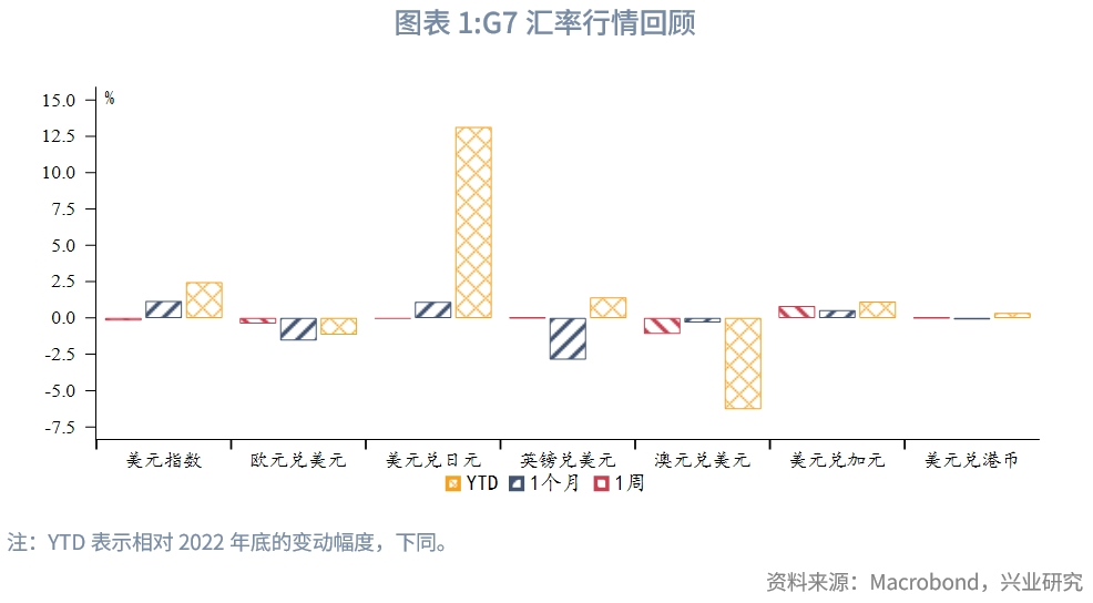 全球宏观:美国9月ADP新增就业人数腰斩,打断美元指数周线升势,但其他关键经济数据大多保持强势,美元指数跌幅受限。离岸美元兑人民币在假期间维持横盘,人民币相对主要货币小幅贬值。境内外远期价差走阔。G7汇率:短期内,欧元兑美元来到前期密集成交区,将获得一定支撑。但在欧元区疲弱基本面、欧央行暂停加息的立场之下,欧元兑美元下行仍有空间、美元指数中期料继续上涨。人民币汇率:维持逆周期工具与刚性结汇盘接续,使得美元兑人民币区间震荡至春节前的基准判断。近期美元指数回调和日元外汇干预有助于减轻人民币汇率压力(套保策略见正文)。