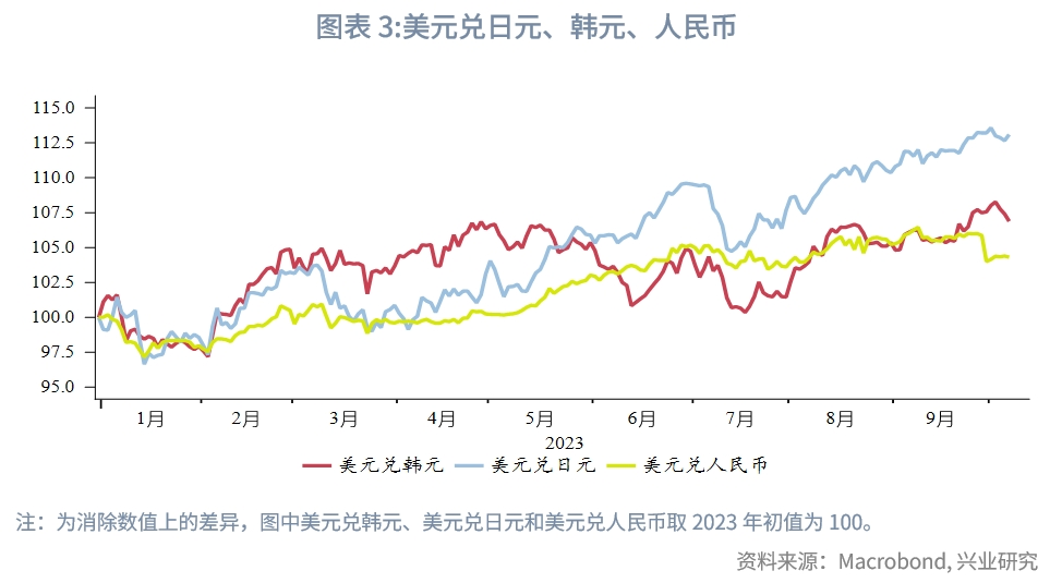 G7汇率方面,美国9月ADP新增就业人数腰斩,打断美元指数周线升势,但非农新增、JOLTS职位空缺、首申失业、PMI等数据保持强势,美元指数跌幅受限。欧元区9月PMI终值意外好于初值,给予欧元汇率一定支撑。10月3日在美债收益率上行的带动下美元兑日元突破150关口后回落,市场猜测日本央行或已出手干预,同时前日本央行理事释放鹰派信号(指出本月或考虑微调YCC和前瞻指引)。