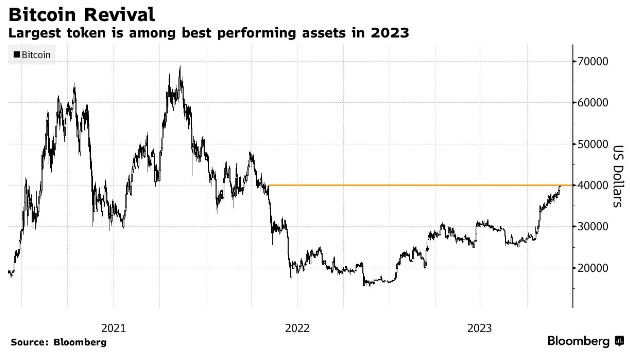 截至周一上午6点35分,比特币在新加坡的交易价格为40099美元,使其2023年的涨幅达到142%。在稳定币TerraUSD崩溃之前,比特币的最后价格为4万美元,这导致了数字资产的崩盘,并导致了加密行业的一连串崩溃。