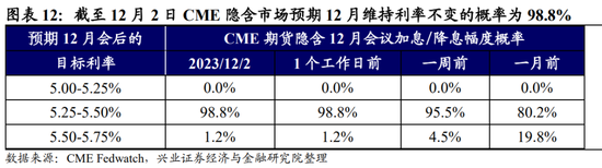 鲍威尔发言中仍开放加息可能性,但降息预期未缓和,美债利率下探。12月1日鲍威尔发言称“若合适则会进一步收紧货币政策”,但此前抢跑联储指引的降息预期并未回调,10年期美债收益率下行,跌破4.2%。
