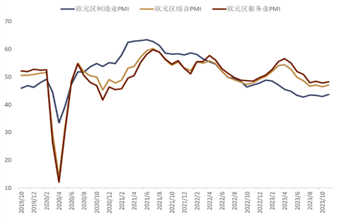我们认为,欧元区经济活动的疲软态势并未得到明显改善,而今年下半年通胀的显著回落以及ECB在10月会议上的暗示(10月会议货币声明中的措辞暗示本轮加息已经接结束),也可能不会使得ECB再次加息。目前OIS市场也并没有对12月会议有任何的加息预期,而对明年上半年已经有了一次的降息预期。