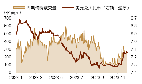 ► 口头调控继续引导人民币汇率预期。潘功胜行长在2023金融街论坛年会称[12]“坚决对市场顺周期行为进行纠偏,坚决对扰乱市场秩序行为进行处置,坚决防范汇率超调风险,防止形成单边一致性预期并自我强化。”第三季度货币政策执行报告亦对汇率着墨较多[13],强调“坚决对市场顺周期行为进行纠偏,坚决对扰乱市场秩序行为进行处置,坚决防范汇率超调风险,防止形成单边一致性预期并自我强化,保持人民币汇率在合理均衡水平上的基本稳定。”在人民币内外部环境完全改善的背景下,口头调控或将继续对市场预期起到引导作用。