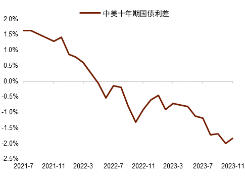 内外因素共振推动人民币汇率走强。人民币汇率11月较美元明显升值(图表2),幅度约2.54%。这是自8月来人民币汇率首次单月走强,涨幅创年内最大。然而人民币涨幅在主要货币居中略靠后(图表3),或体现人民币更多处于跟涨,而非独立升值。人民币汇率11月的涨幅集中在中上旬,主要驱动因素或是美国就业与通胀数据不及预期以及中间价连续高开所释放的政策信号。前者导致美元指数与美债收益率明显回落。后者则令外汇市场预期趋于转变,市场主体或倾向于开始卖出美元,并直接推动人民币汇率的升值。在经济平稳复苏、中美元首会晤、稳定房地产政策进一步推出等因素的共振下,11月跨境资金趋于平衡。北向资金在11月小幅流出17.8亿元,较8月、9月和10月大幅改善(图表4),中美利差亦明显收窄,我们判断外资有望继续回流债市。综上,我们认为外部环境的好转或主导了11月人民币汇率的升值,内部因素的改善亦推动了跨境资金流向趋于平衡。配合稳汇率政策对预期的提振,多重因素共振推动人民币汇率企稳走强。