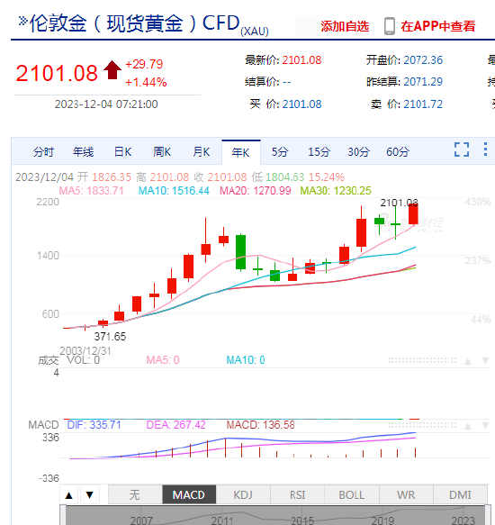 12月4日,现货黄金刷新今年5月创下的历史高位,突破2100美元关口。