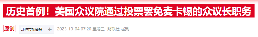 另外,美国国会可能会在下周迎来一位新的众议院议长。在麦卡锡历史性的被投票撤换后,共和党人决定在10月10日举行会议听取候选人发言,并在11日进行投票选举。