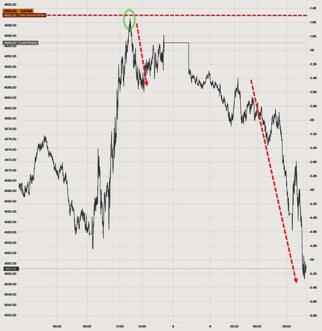 事实上,在上周五上测4600点后,标普500指数周一一直未能再靠近这一点位。