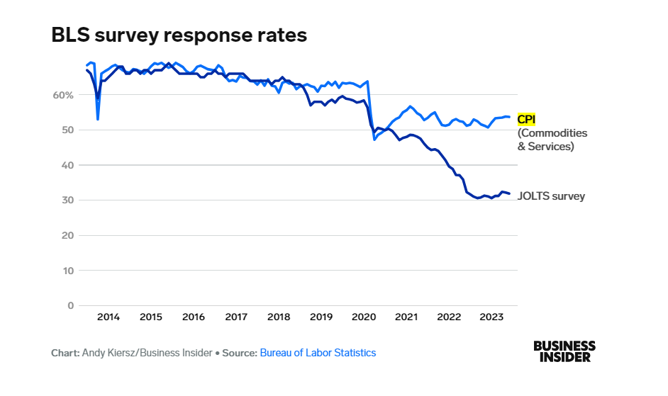 “虽然一些调查的回复率可能会下降,但考虑到我们的样本量很大,我们的回复率仍然相对较高,”他告诉《商业内幕》。