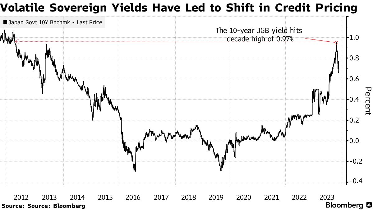 买家正寻求扩大日本和海外发行者发行的日元计价债券的利差。彭博指数显示,目前利差水平约为61个基点,高于2009年金融危机爆发以来的每年平均水平。不过,利差在2023年经历了一些相对较大的波动,在硅谷银行(Silicon Valley Bank)和瑞士信贷(Credit Suisse AG)破产扰乱全球金融市场后,利差从3月份的近68个基点迅速下降。