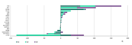 全球央行在2022年购入了1136吨黄金,创下历史记录。我国央行也已连续十二个月增持黄金,今年前三季度购金量达到800吨,再创新高。公开数据显示,中国、波兰和新加坡央行是2023年央行购金主力