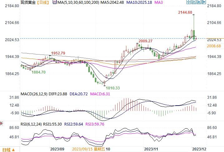 周一(12月4日),金价当日在创下纪录新高后下跌逾2%,最终收盘在2,029.74美元/盎司。