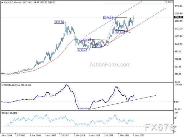 黄金长期走势的总体前景是,从1160-2074涨势的100%测算来看,金价次轮涨势从1614.60有望涨向2529.27美元附近。实现这一宏伟目标的可能性取决于明年全球货币政策是否会放松,以及地缘政治紧张局势是否会持续或进一步升级。